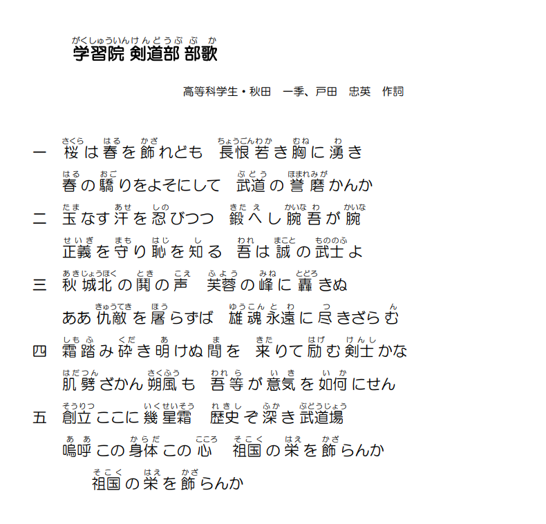 • 学習院剣道部部歌